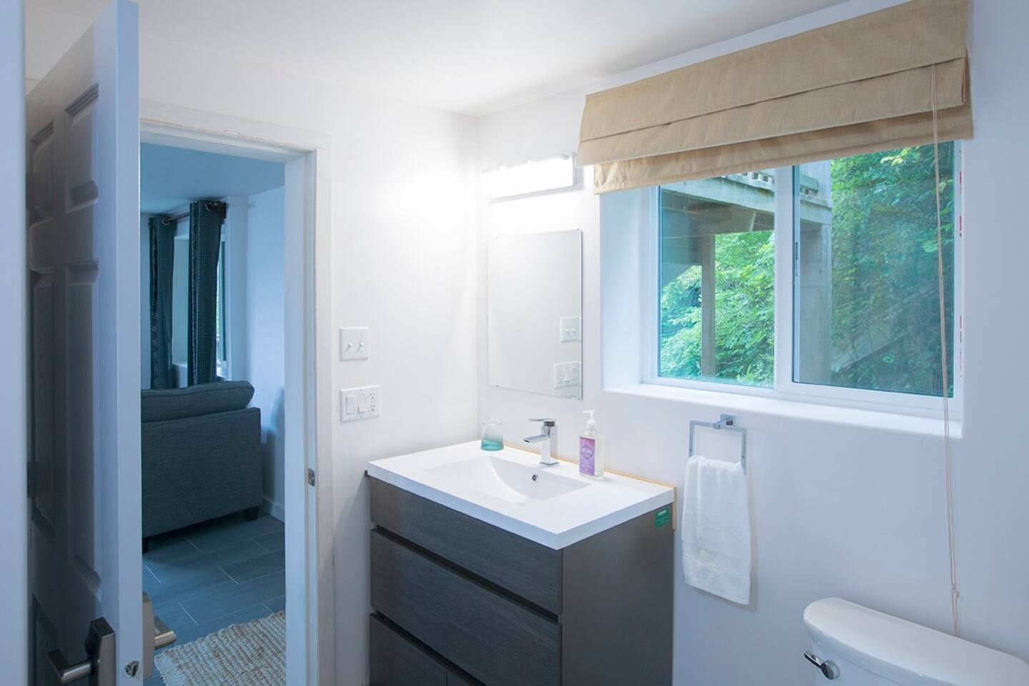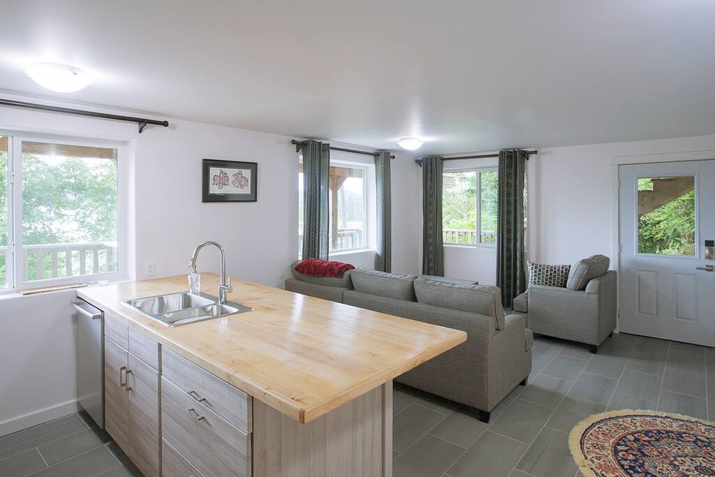 - Amenities: Dishwasher, Eco-Friendly Products, Kitchen, Large covered deck, Laundry, Living Room, Porcelain floors throughout, 42" TV, Private, Private Bathrooms, Sofa Bed, Soundproofing, Two Bedrooms, Two Queen Beds, Washer & Dryer, WiFi